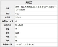 食用・加工用馬鈴薯としてもっとも多く栽培されている品種 |