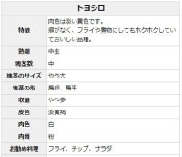 癖がなく、フライや煮物にしてもホクホクしていておいしい品種。 |