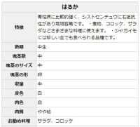青枯病に比較的強く、シストセンチュウにも抵抗性があり栽培容易です。 ・煮物、コロッケ、サラダなどさまざまな料理に使えます。 ・ジャガイモには珍しい生でも食べられる品種です。 |