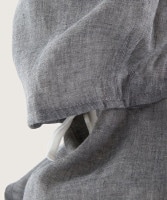 ○頭からかぶって耳紐をかけるだけのカンタン着用♪ネックカバーの後ろで首周りのサイズ調整もできます